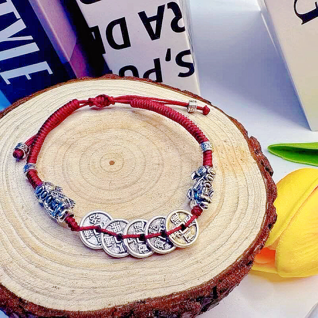 Beautifully hand-woven with five emperor coins and a pixiu, this bracelet is a symbol of wealth and protection. The craftsmanship is impressive.