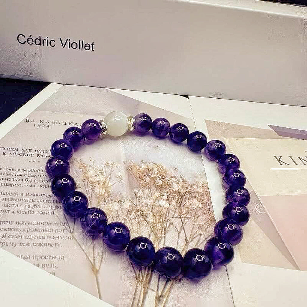 The bracelet is unique with its combination of amethyst and moonstone. It's comfortable to wear and has become a favorite for its calming energy and style.
