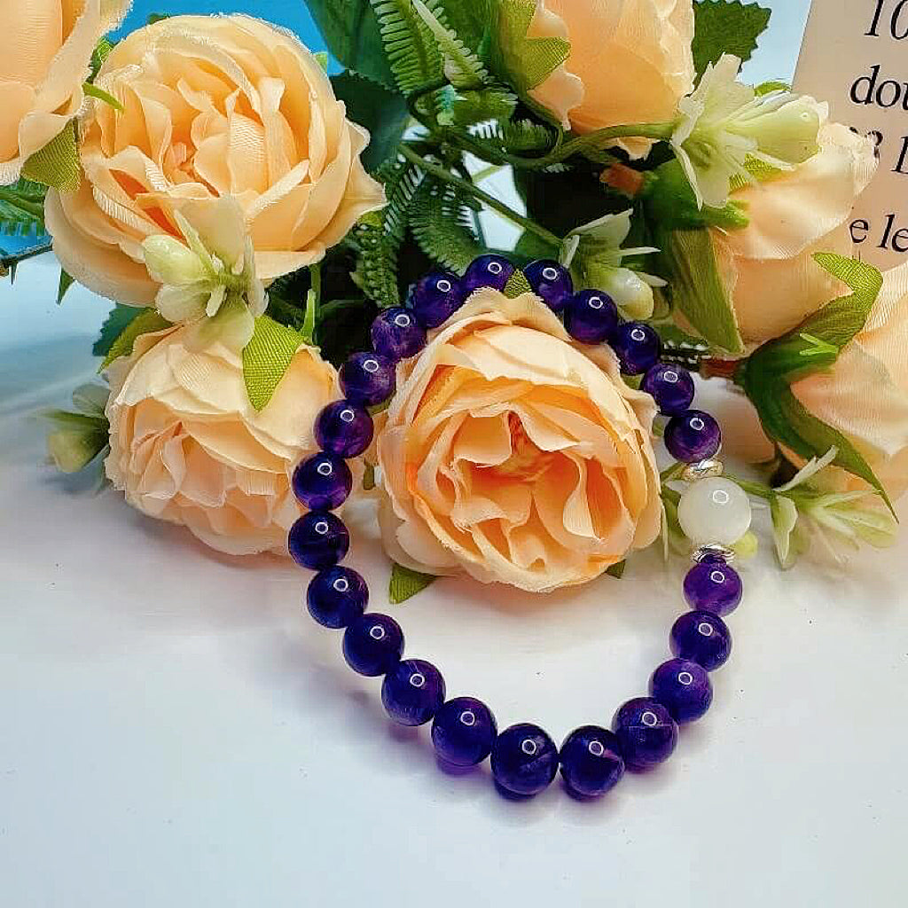 The amethyst and moonstone bracelet is elegant and carries a mystical aura. It's perfect for enhancing spiritual connection and looks stunning on.