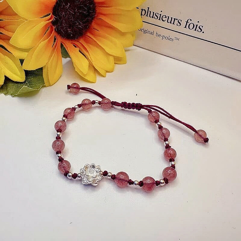 This strawberry crystal alloy lotus beaded bracelet is not only a beautiful ornament, but also a spiritual amulet in life. It is suitable for daily wear and can also be given as a gift to relatives and friends to bring warmth, blessings and good luck.