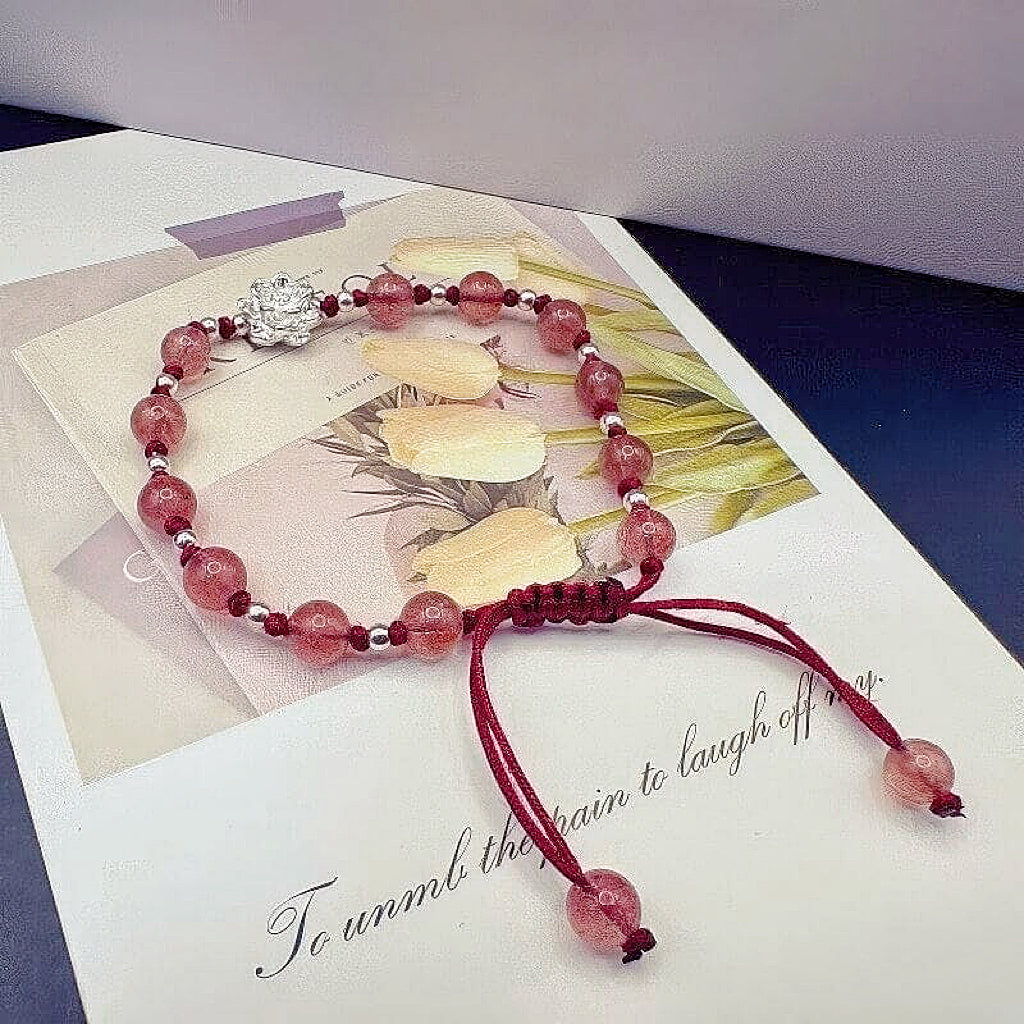 In Feng Shui, strawberry quartz helps to attract positive energy and balance emotions, especially helping women improve their love luck and interpersonal relationships. Wearing this bracelet can help enhance inner peace and gentleness, dissolve negative emotions, and bring good luck and positive energy.